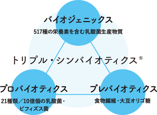※2 乳酸菌生産物質とプロバイオティクス、プレバイオティクスによるトリプル・シンバイオティクス®(BG・21菌発酵物粉末)のこと